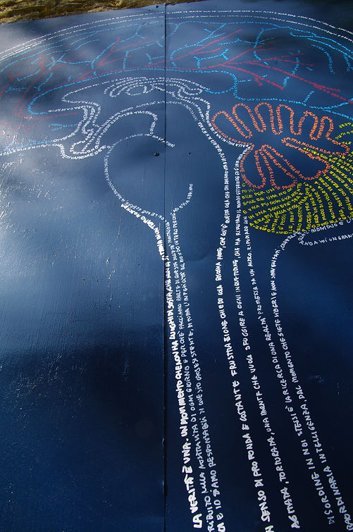 2013, penna su carta e smalto su ferro, testo Kebra Magast, progetto e intervento pittorico-ambientale, Camo MuseoAcieloAperto, Alba